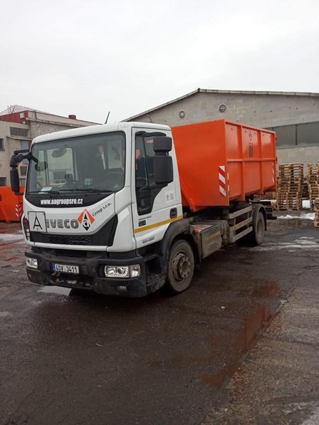 IVECO EUROCARGO – kontejnerový nosič + přívěs + 19 ks velkoobjemových ocelových kontejnerů 15 m3